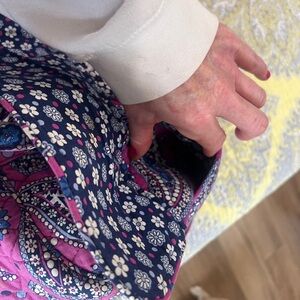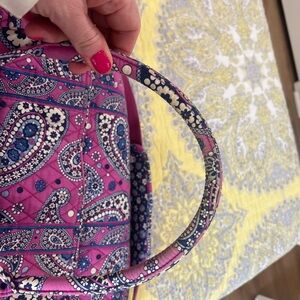 Chic Vera Bradley tote with a lively pink and blue paisley design. Perfect for everyday use or for the weekend get away.