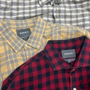 Bonobos Men's lot of 2 plaid long sleeve Slim Fit shirts XLL Tall XLT Long