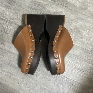 J. Crew Tan Leather Platform Mules/Clog with Silver Accents Size 8.5