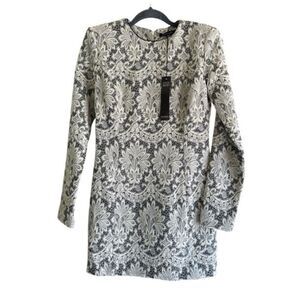 Plein Sud Brocade Mini Dress NWT FR42 US10 Black Gray White Made in Italy