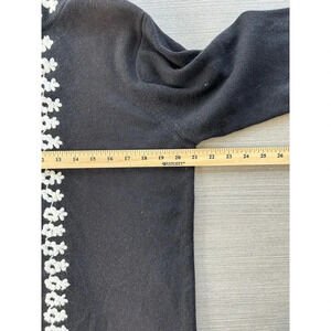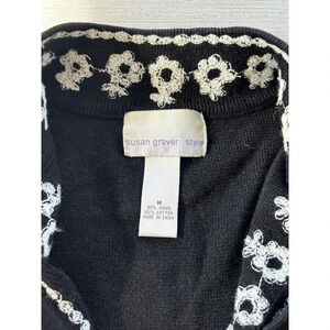 Susan Graver Long Ramie Cotton Knit Cardigan Floral Embroidered Black