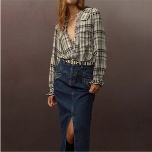 NWT Anthropologie Keira Long sleeve Plaid Button-Up Blouse