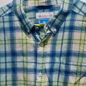 Columbia Men's Button-Up Plaid Shirt Large L/S Blue & Yellow Cotton