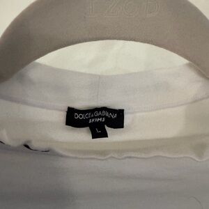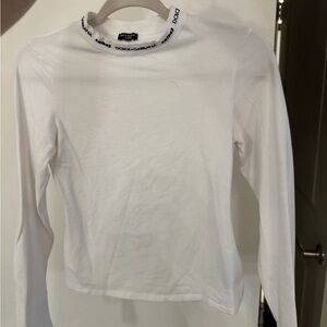 Elegant long sleeve tee by Dolce & Gabbana. Features subtle logo detail on the collar. Perfect for layering or standalone wear. Worn only 2x. Size L, fits like a medium