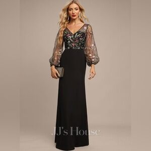 J J’s House NWT Sheath/Column V-neck Illusion Floor Length Floral Chiffon Dress