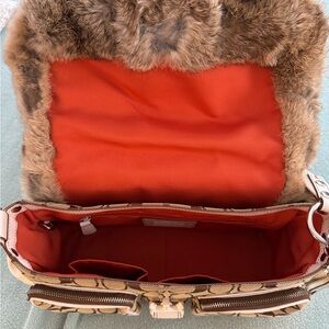Coach Cream and Brown Fur Accent Bag