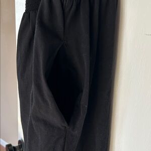 Black dress with stretchy straps and pockets. Cotton! Smocked. Perfect for any occasion. 43” total length from top of strap to hem.