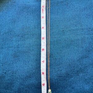 This elegant gold necklace features a stunning green pendant, perfect for adding a touch of sophistication to any outfit.