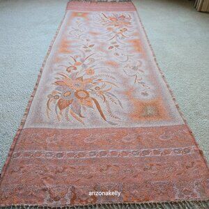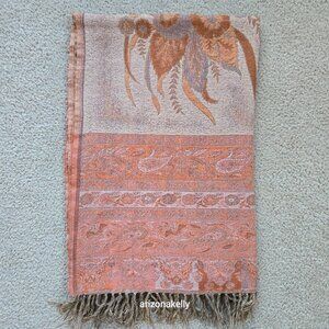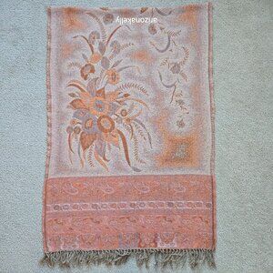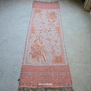 NWOT 100% Wool Jacquard Scarf Coral/Soft Orange