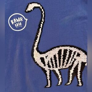 This royal blue OshKosh B'gosh flip sequin dinosaur graphic T-shirt is sure to delight your little paleontologist! The sequins on the dinosaur can be flipped from pink and silver to reveal a dinosaur skeleton graphic. 100% cotton, size 10.