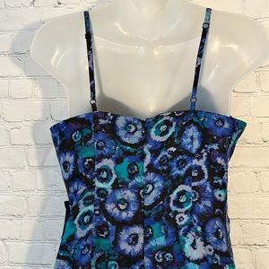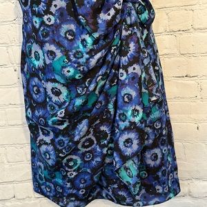 Excellent condition beautiful Lauren Conrad dress with adjustable straps and back zipper! Has side ruching with bow! In beautiful purled and blue and teal colors! Size 6! Pit to pit is approx 16 inches and waist is approx 15 inches! Length from waist is approx 18 inches! Front has faux wrap!