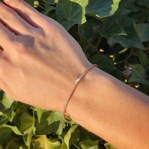 This stunning gold bangle bracelet adds a touch of elegance to any outfit. Perfect for any occasion.