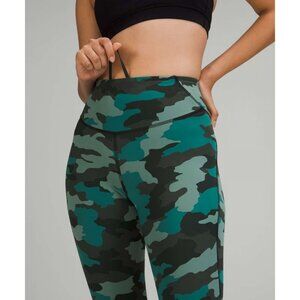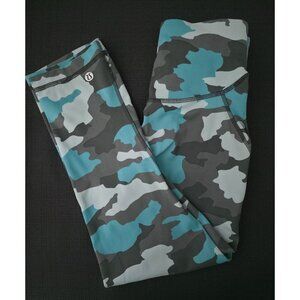 Lululemon Base Pace High-Rise Tidewater Teal Camo Crop Athletic Leggings Sz 2
