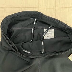 Nike logo on front, elastic waist, zipper pocket on back, zippered leg, reflective strip on the lower leg.