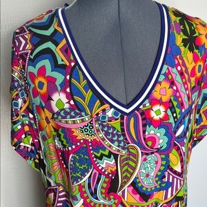 Johnny Was Janie Favorite Tiered Tea Length Dress Colorful V-Neck Dress