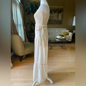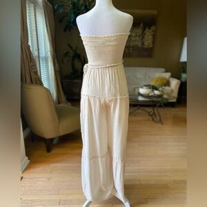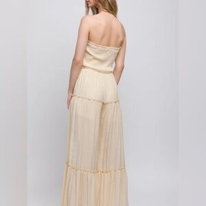 LOVE TREE Woven Solid Beige Sleeveless Smocked Ruffle palazzo Jumpsuit Small