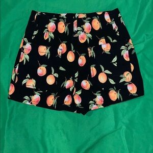 Chic high-waist shorts with a peach pattern. Ideal for casual outings.