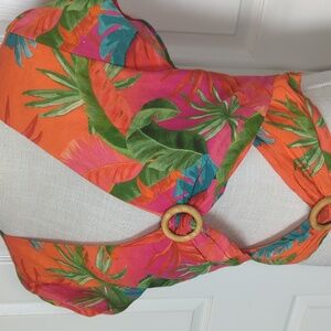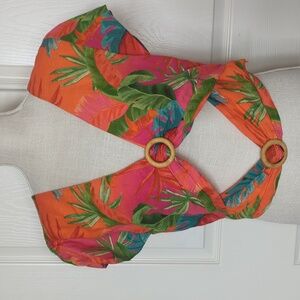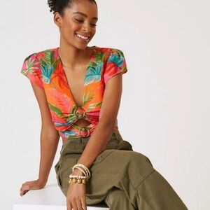 Farm Rio x Anthropologie Cut-Out Top. Colorful tropical print top with midriff cutout.