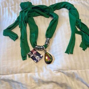 Green and silver scarf necklace with Jewel