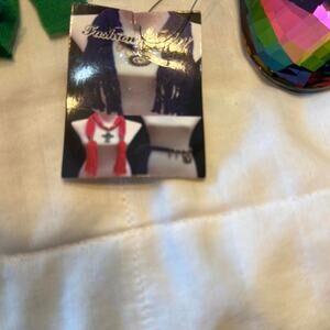 This is a beautiful and unique scarf necklace that will add a touch of elegance to any outfit! The scarf is made of a soft, lightweight fabric in a lovely combination of green and silver. It features a stunning jewel pendant that catches the light and adds a touch of sparkle.