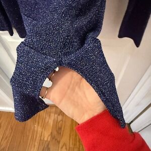 Chicos Women Size 2/L Long Sleeve Purple Metallic Knit Asymmetrical Sweater Top