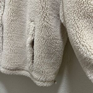 Soft cream sherpa jacket with logo detail. Ideal for cool weather.