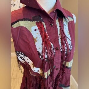 Make a bold statement wherever you go in this stunning Queen of Sparkles mini dress! This eye-catching piece features a rich garnet base adorned with gold and multicolor sequin western boots, each finished with dangling sequin fringe for extra movement and sparkle 💃✨