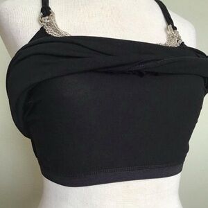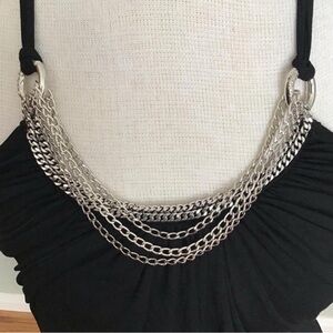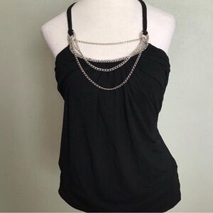 Y2K Black flowy halter top with chunky silver chain detail size XXS