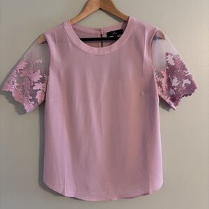 Mauve pink short sleeve blouse with embroidered sleeves