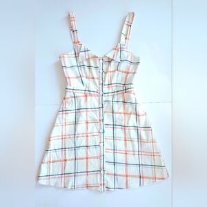 WAYF Summer Plaid Linen-Blend Checkered Button-Down Dress S
