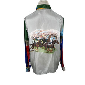 Bogner Color Block Button Blouse Horse Equestrian Back Silk Size US 12 EU 42