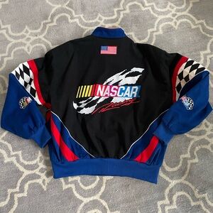 Nascar Men's Black and Blue Checkered Bomber Jacket
