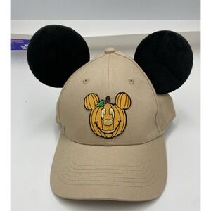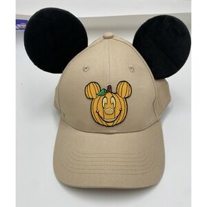 Disney Park Life Adult Unisex Adjustable Mickey Pumpkin Hat With Ears Beige OS