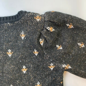 Saltwater Luxe Sweater Medium Puffed Sleeve Fair Isle Trim Soft Girl Academia