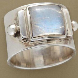 Handmade Silver Gemstone Square Moonstone Ring