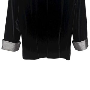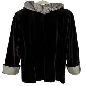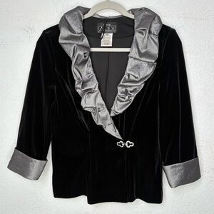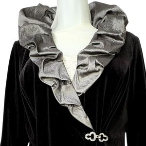 Alex Evenings Whimsigoth Black Velvet Jacket MP Rhinestone Clasp, Metallic Ruffle Goth Fairy 90s