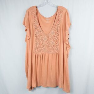 Susan Graver Premier Knit Tunic Sheer Chiffon Flutter Sleeves Womens 2X Black