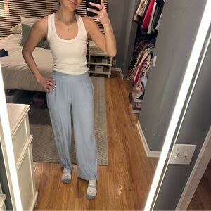 Stylish wide leg pants in a soft sky blue. Perfect for casual wear.