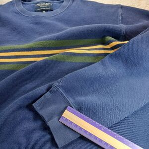 American Eagle 100% Cotton V-NECK Close Knit Sweater Y2K Men's M Blue w/Stripes.