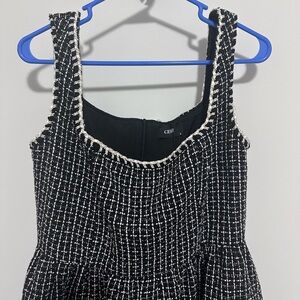 Step out in style with this elegant black and white tweed dress. Perfect for any occasion, this dress combines classic design with modern flair.