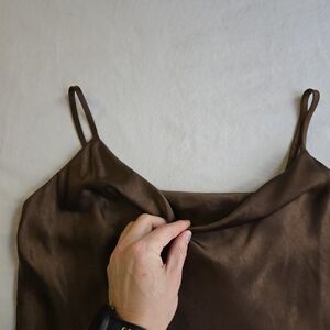 Audrey 3+1 Espresso Brown Maxi Spaghetti Strap Slip Dress Cowl Neck Thigh Slit