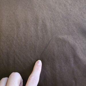 In good pre-owned condition - satiny finish fabric has a series of stains on the front (shown in close up photos). I did already hand wash this and the stains didn't come out, but I didn't use any specific stain treatment. IMO these aren't super noticeable when this is on because of the color-shifting of the shiny/satiny fabric, but wanted to be clear that this has marks.