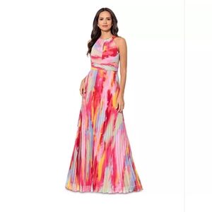 Vibrant hooded jacket featuring a logo patch. Bold orange, purple, and pink colors.