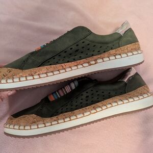 Trendy Olive Green Slip-On Sneakers — Size 8 (NEW!)