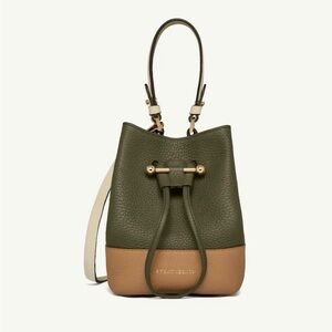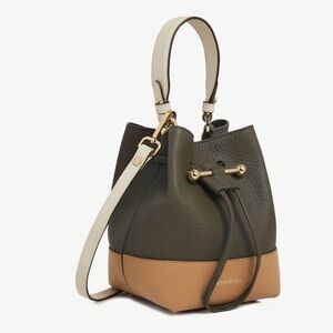 Strathberry Luxurious Bucket Bag Two Way Olive Tan and Cream