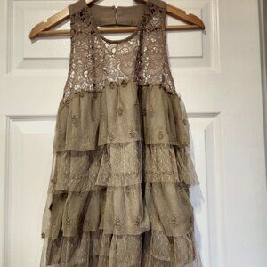 Boho top features beautiful details in the front and back. Size M. Beige color