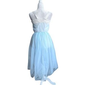 Tula Vintage 1940's Two Piece Set Nightgown Robe Blue Romantic Retro Lace Beaded