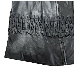 Peter Nygard Black Leather Vest Weave Cowgirl Biker Women's size 10