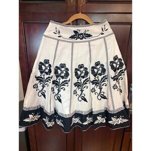 Boston Proper A-line White & Black Cotton Embroidered Skirt Size 2