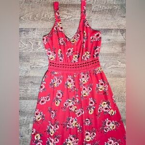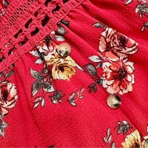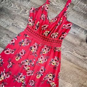 I.N. San Francisco Red Floral Maxi Dress Medium Boho Crochet Waist Slit